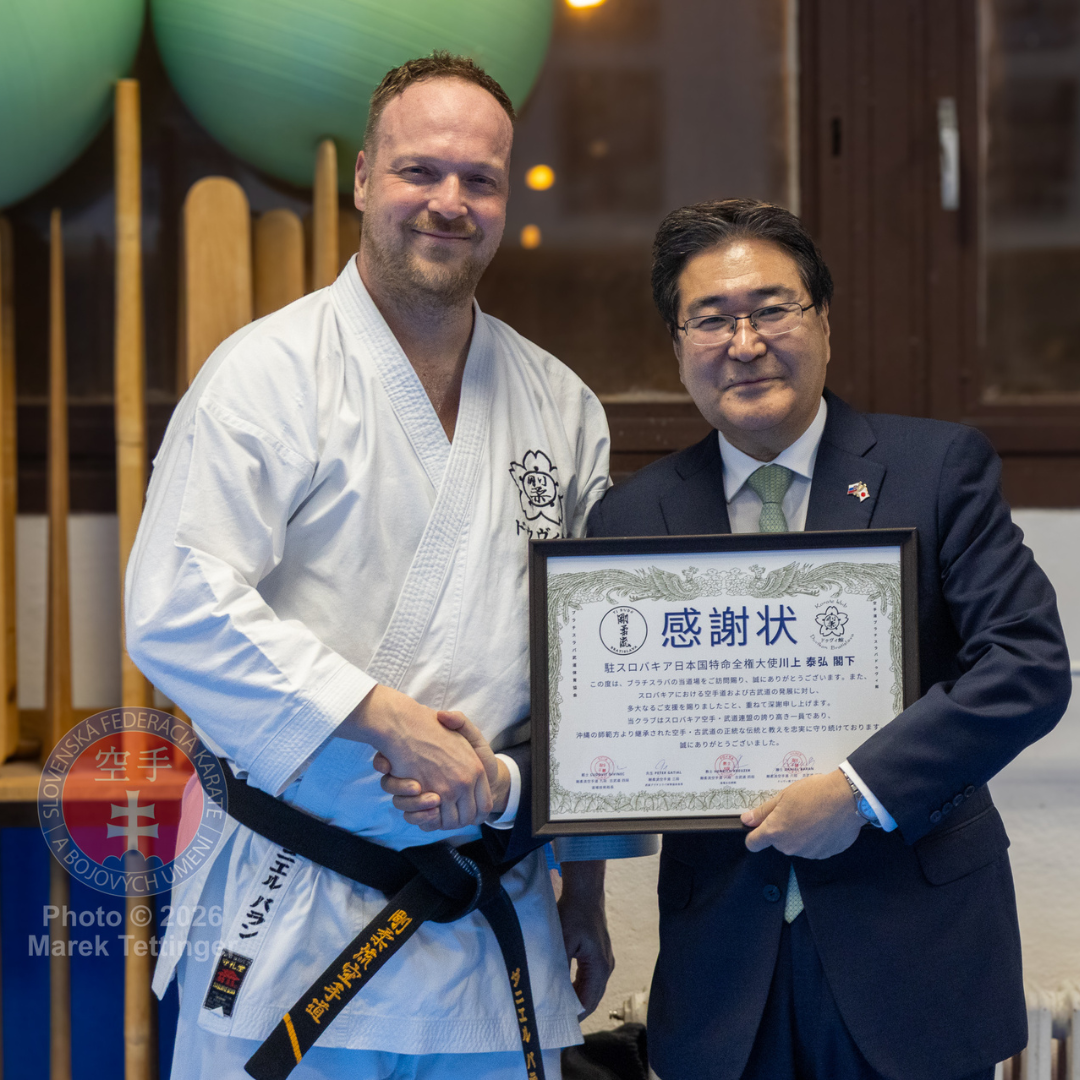 Návšteva japonského veľvyslanca potvrdila, že cesta, ktorou sa kluby Duvikan a TJ BUDO vybrali, je správna. Základom zostáva vernosť učeniu okinawských majstrov na čele s prezidentom okinawskej federácie, Hanshi Akira Gushi.