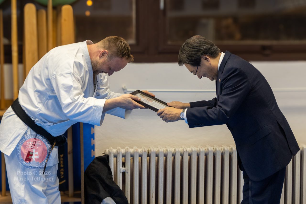Jeho Excelencia Yasuhiro KAWAKAMI neskrýval nadšenie z vysokej úrovne cvičencov a ocenil úsilie, s akým kluby šíria hodnoty okinawského karate a kobudo na Slovensku.